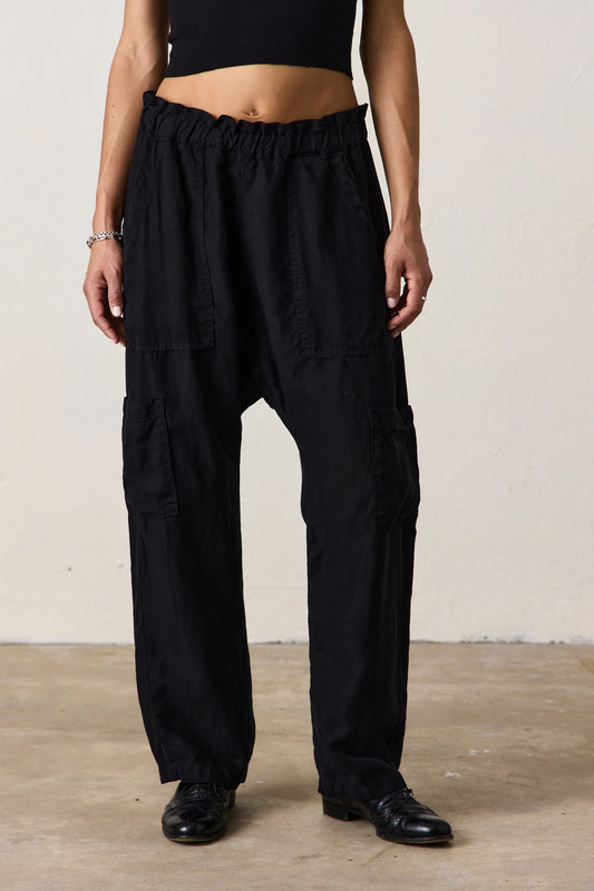 NSF Shailey paperbag waist lyocell linen pant BLACK